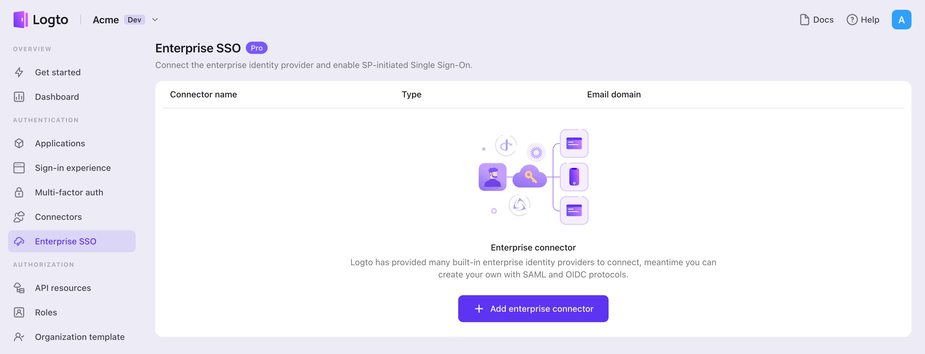 1. Navigate to Logto console > Enterprise SSO.