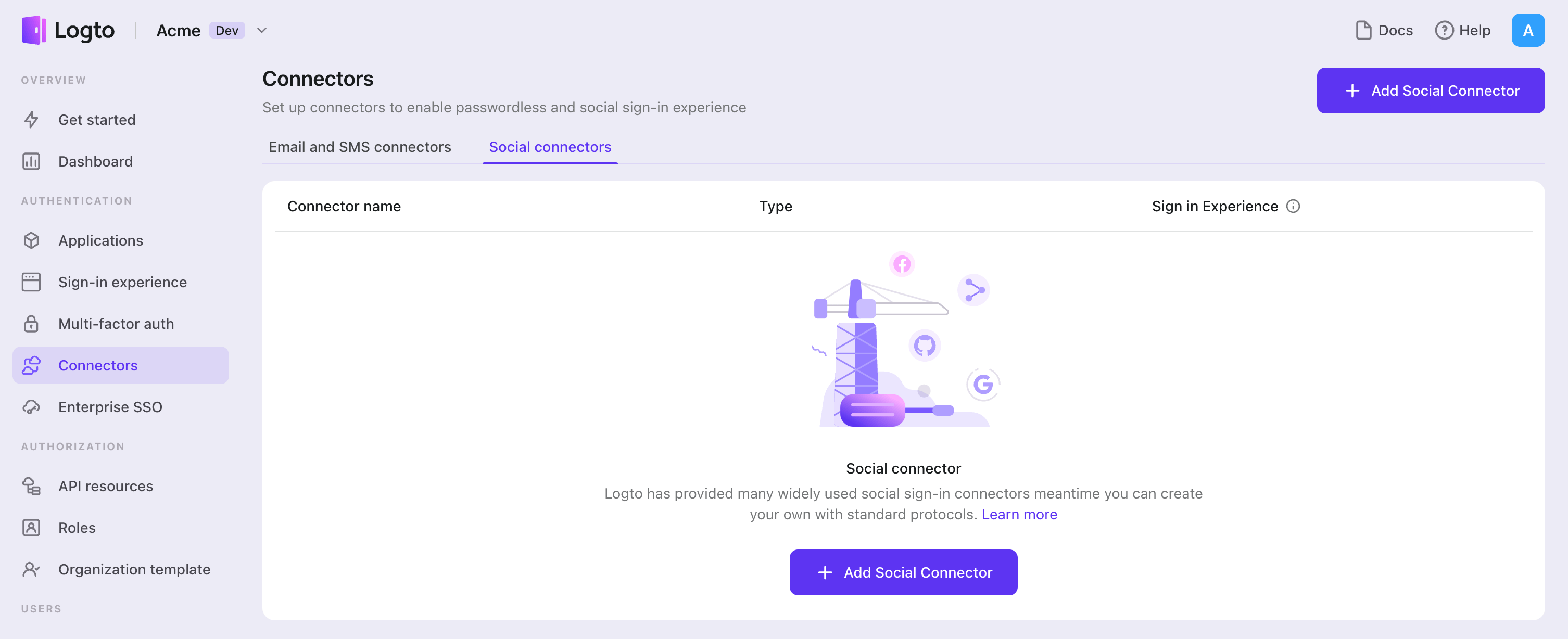 Once you create a social connector successfully, you can enable it as a "Continue with SAML" button in Sign-in Experience.